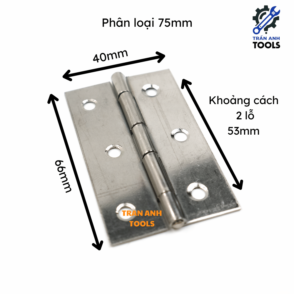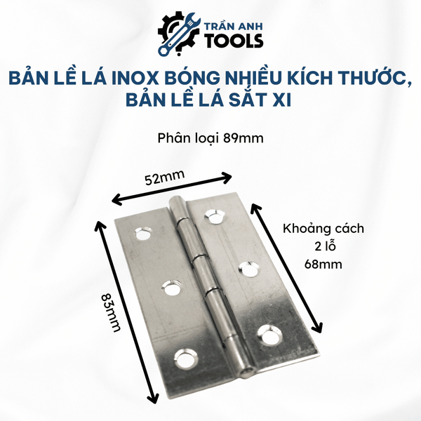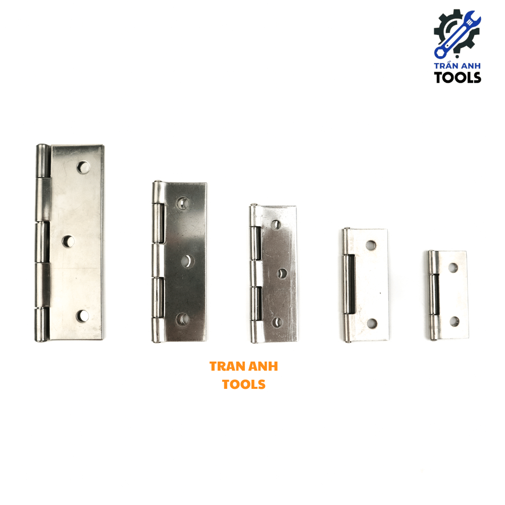 Bản lề lá Inox nhiều kích thước Trần Anh Tools được biết đến là một giải pháp hoàn hảo cho việc lắp đặt cửa với thiết kế chắc chắn, bền đẹp và thẩm mỹ cao. Được sản xuất bằng chất liệu inox 304 cao cấp hoặc sắt xi không gỉ, bản lề này đáp ứng mọi nhu cầu từ cửa gỗ, cửa sắt cho đến các cửa kích thước lớn hay nhỏ. Sản phẩm không chỉ mang lại tính tiện dụng trong việc đóng mở mà còn giữ được độ sáng bóng, chống ăn mòn theo thời gian.
