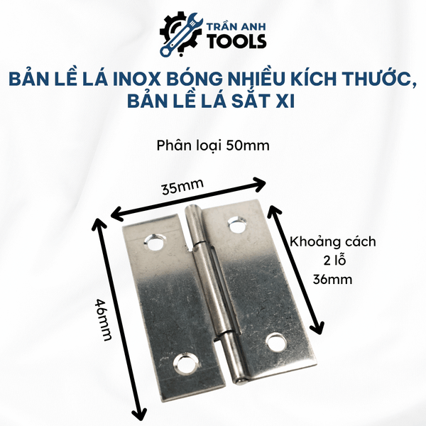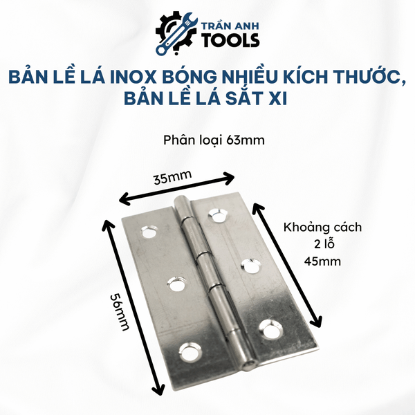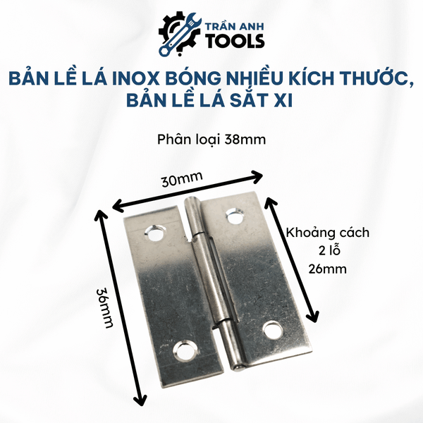Trần Anh Tools tự hào là đơn vị phân phối bản lề lá inox và sắt xi chất lượng cao, đảm bảo chất lượng. Với nhiều năm kinh nghiệm trong lĩnh vực phân phối phụ kiện cửa và công cụ dụng cụ, Trần Anh Tools luôn cam kết mang đến cho khách hàng sản phẩm tốt nhất cùng dịch vụ tận tâm. Mua bản lề lá tại Trần Anh Tools, khách hàng không chỉ yên tâm về chất lượng mà còn được hưởng nhiều ưu đãi hấp dẫn.