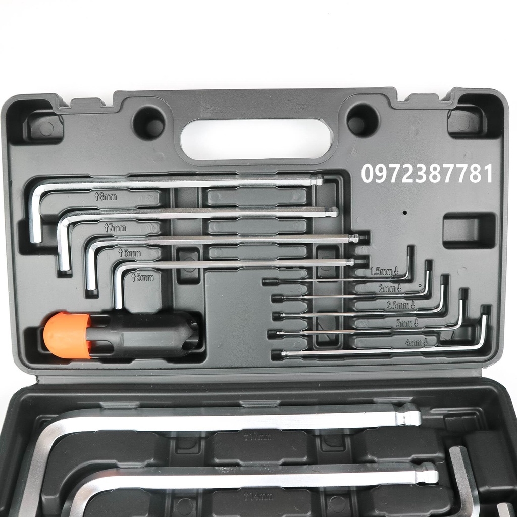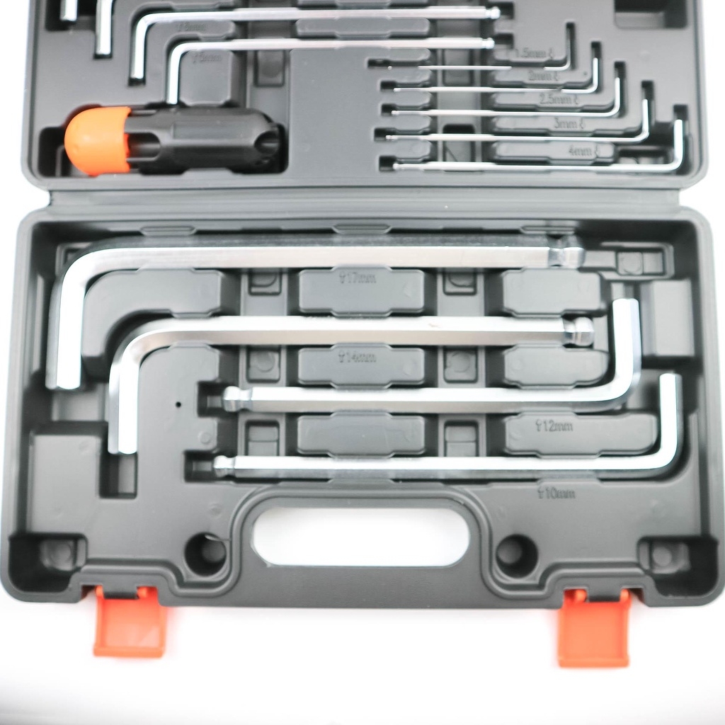 - Bộ lục giác bao gồm các cỡ 1.5 2 2.5 3 4 5 6 7 8 10 12 14 17mm