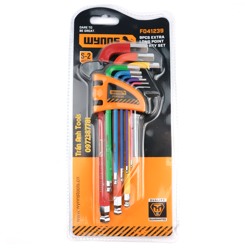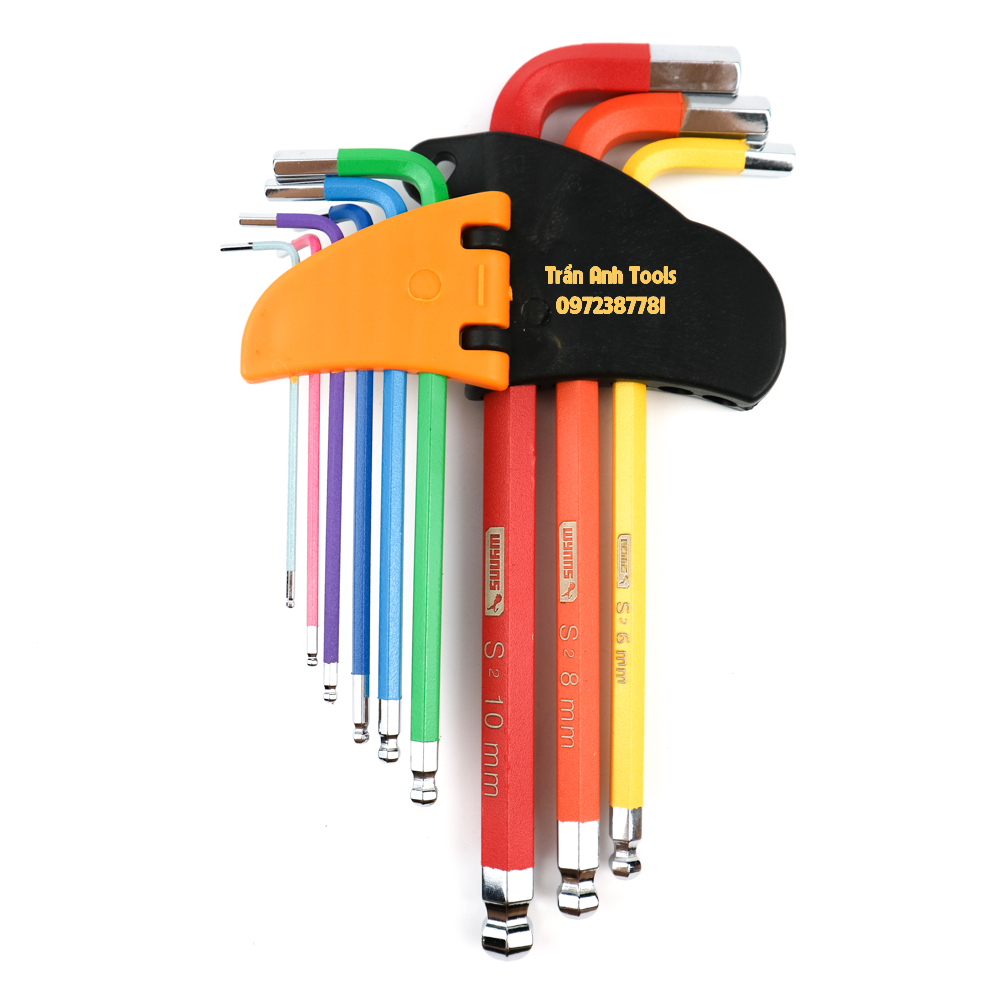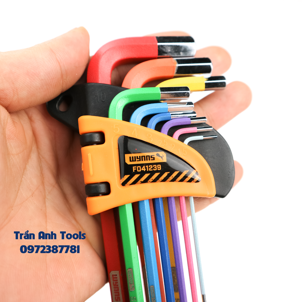 Bộ lục giác màu đầu bi Wynn's F041239 dài 18cm chất liệu S2 cao cấp, bộ lục giác màu 9 chi tiết hàng chất lượng cao là một bộ dụng cụ quan trọng và tiện dụng trong các công việc sửa chữa và lắp ráp. Bộ này bao gồm 9 cây lục giác với kích thước từ 1.5mm đến 10mm, được đánh màu riêng biệt để dễ dàng nhận biết và sử dụng. Bộ lục giác bi giúp người dùng nhanh chóng và chính xác thực hiện các công việc vặn bu lông và đai ốc có đầu lục giác.