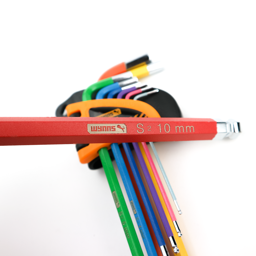 Bộ lục giác màu đầu bi Wynn's F041239 dài 18cm chất liệu S2 cao cấp, bộ lục giác màu 9 chi tiết hàng chất lượng cao là một sản phẩm chất lượng cao được chế tạo từ thép S2 cao cấp, đã qua xử lí nhiệt để đạt độ bền cao và chống xoắn. Bộ này bao gồm 9 cây lục giác và đầu bi với kích thước từ 1.5mm đến 10mm, phù hợp với nhiều loại bu lông và ốc vít.