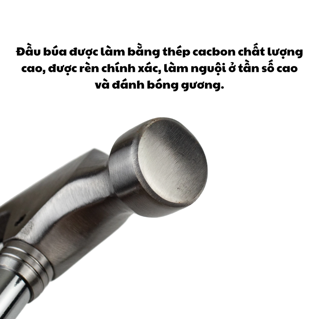 Đầu búa: Thép rèn cao cấp, tôi luyện chắc chắn, chống mài mòn.