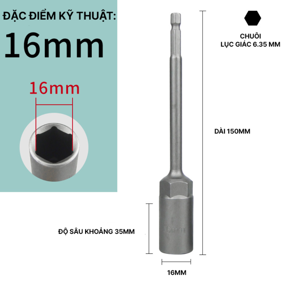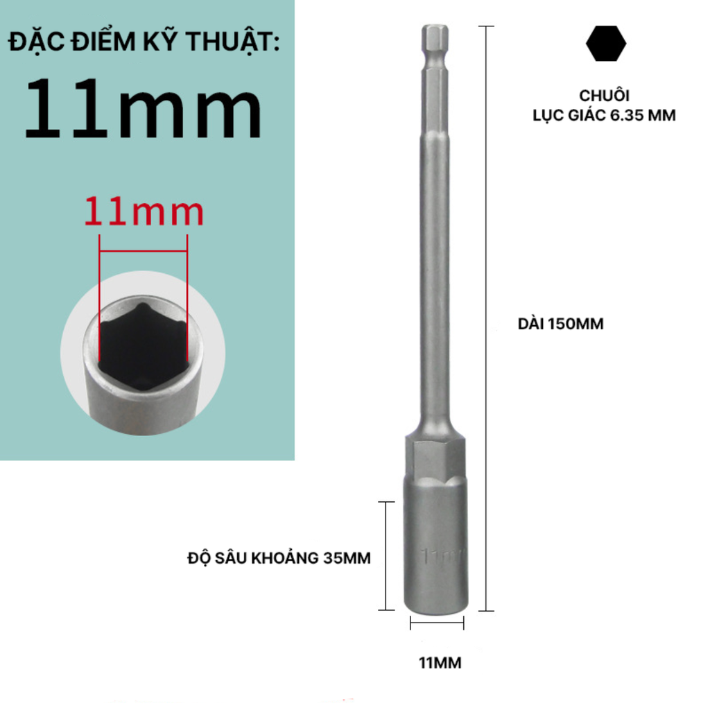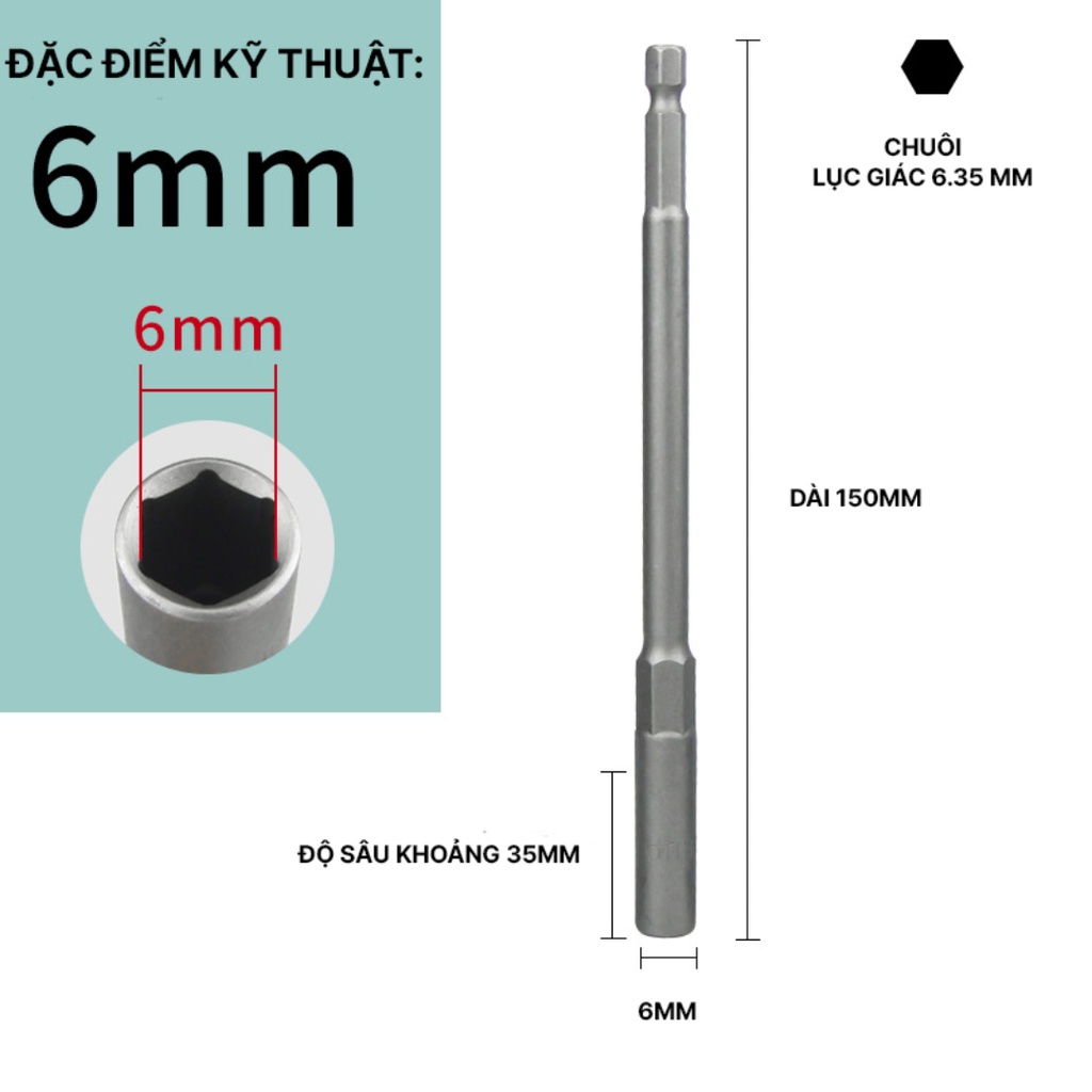 Đầu Chụp Lục Giác Dài 150mm Thép Crom Vanadi Siêu Bền Chuôi 6.35mm Dùng Cho Máy Khoan Bắt Vít là dụng cụ chuyên dụng, hỗ trợ tháo lắp các loại ốc vít lục giác nhanh chóng, dễ dàng và an toàn. Với thiết kế dài 150mm, sản phẩm cho phép thao tác ở những vị trí sâu, hẹp mà các loại đầu chụp thông thường khó tiếp cận.