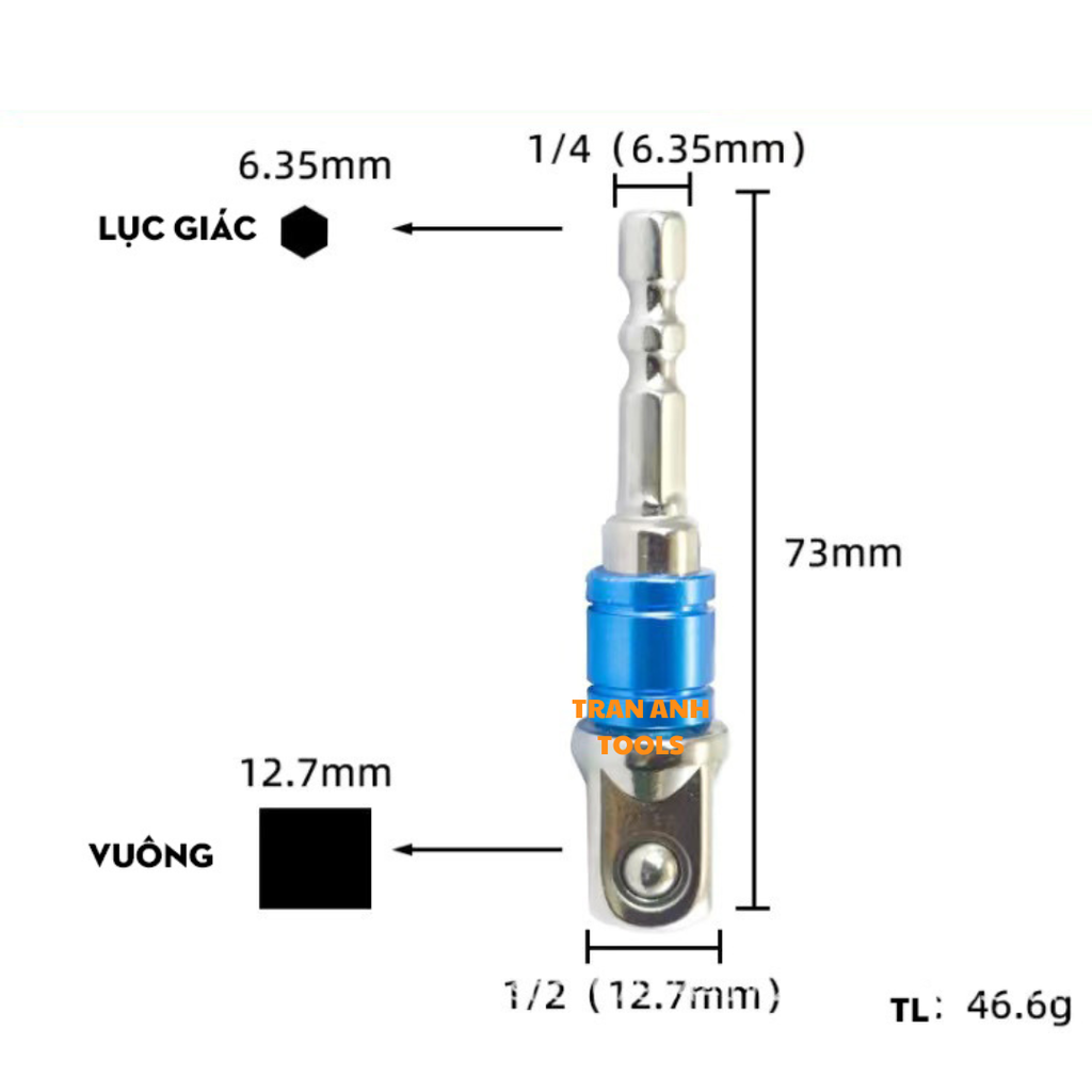 Đầu Chuyển Vặn Vít (1/4) Sang Đầu Vặn Bulong (1/4, 3/8, 1/2) Cao Cấp - Phụ Kiện Đa Năng Cho Máy Khoan và Máy Vặn Ốc